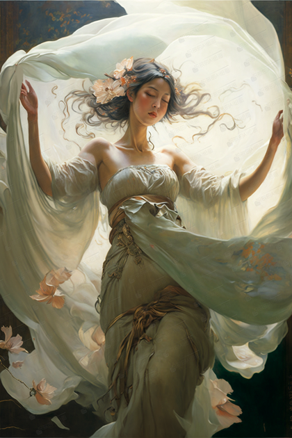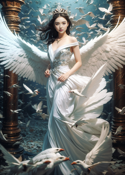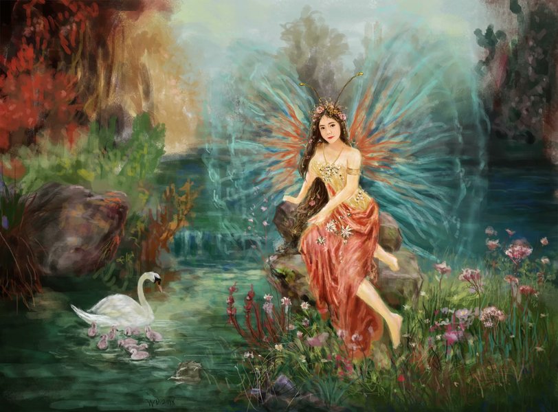 仙女天使翅膀精细写实绘画