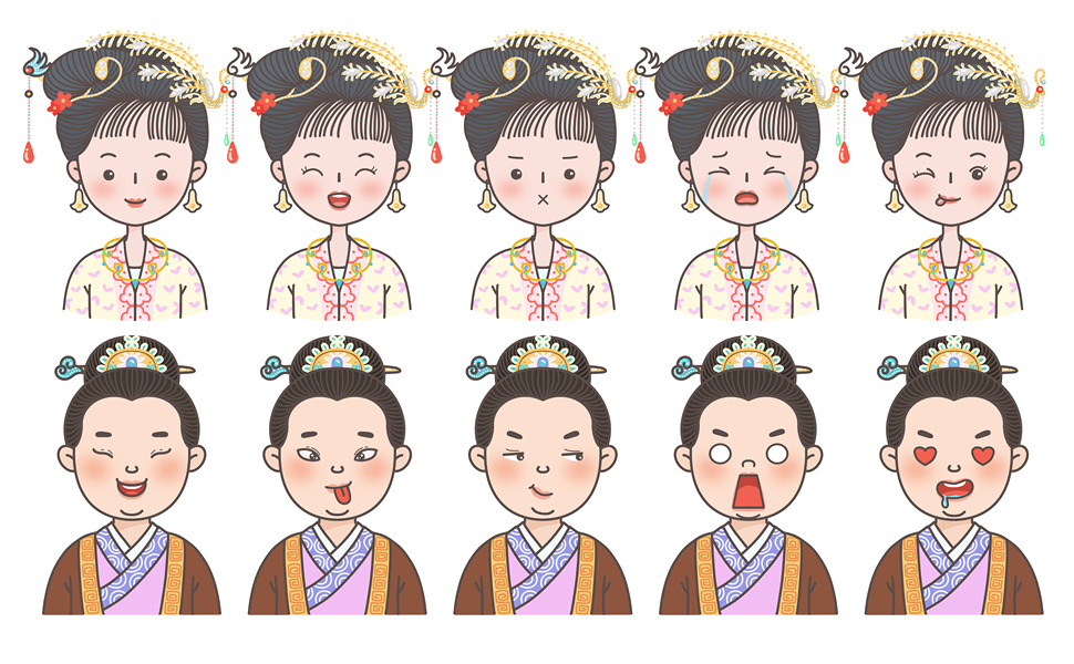 画了一组可可爱爱的唐代小人