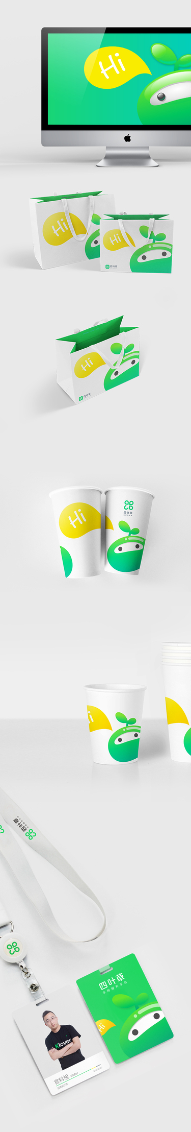 手提纸袋设计、纸杯设计、工牌设计