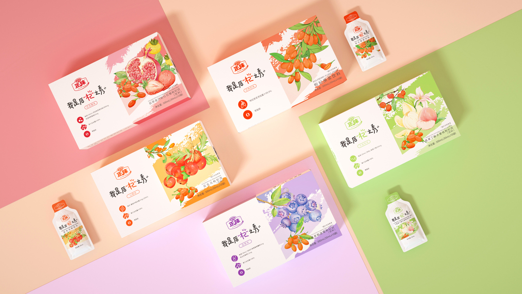 {原创}石榴水果零食礼盒手绘插画包装设计