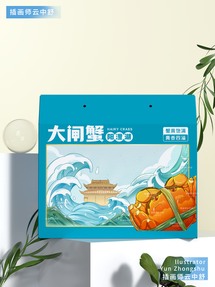 大闸蟹包装插画/海鲜包装设计/礼盒包装设计
