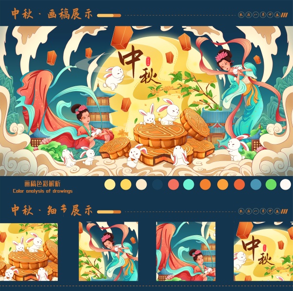 中秋 X 敦煌 I 遨游桂月 I 中秋节插画设计
