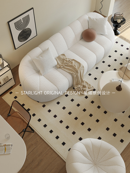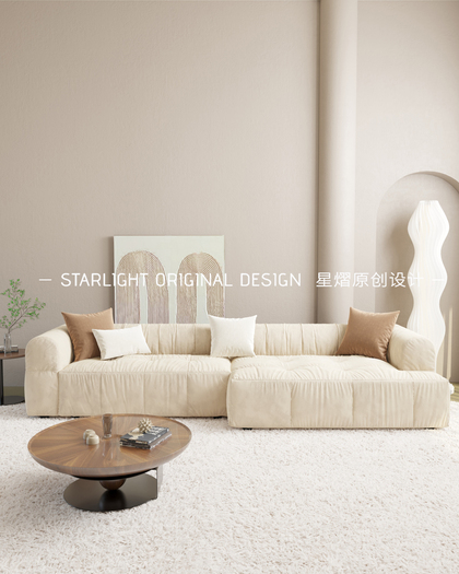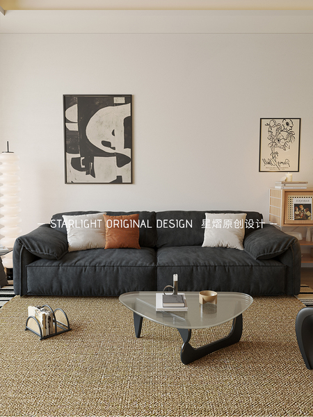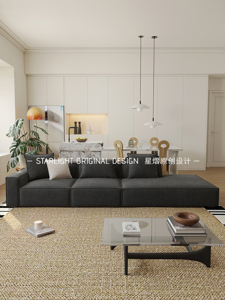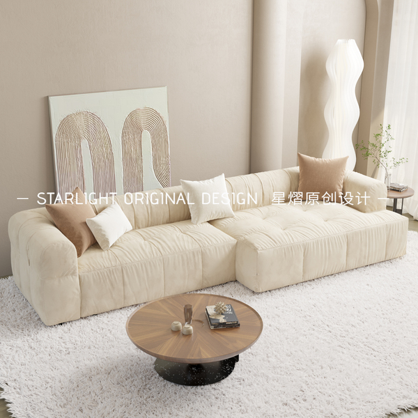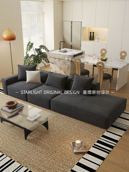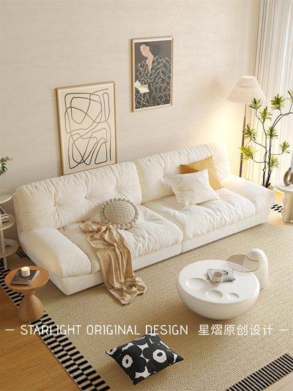 奶油科技布沙发丨豆腐块超深坐宽沙发家具电商渲染