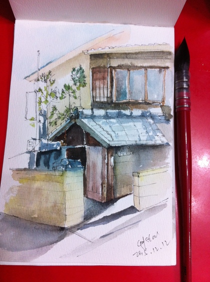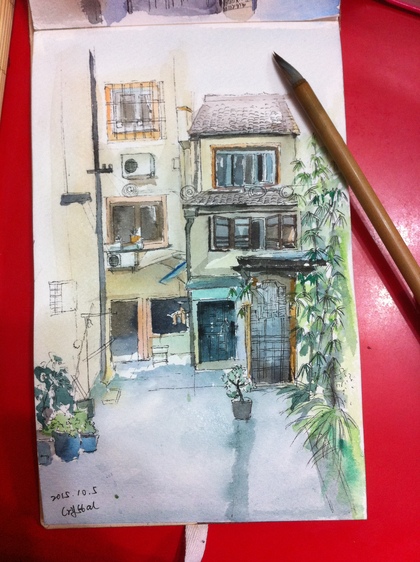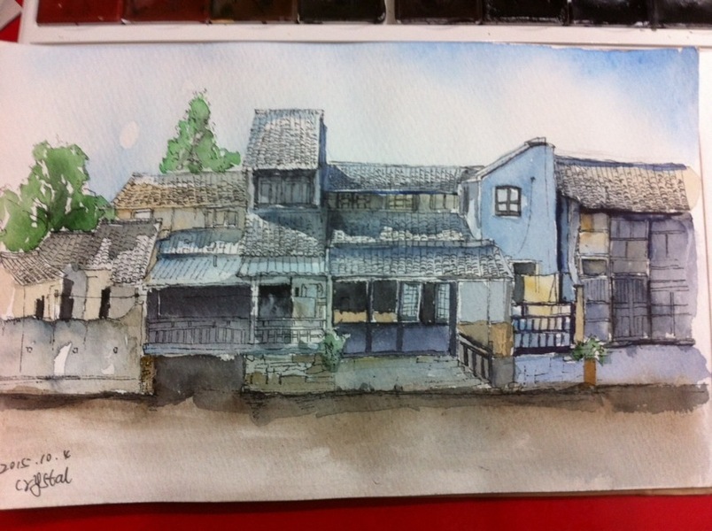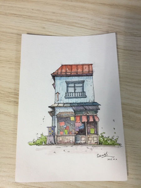 【小熊猫】水彩手绘教程水彩风景旅行手帐一家小店