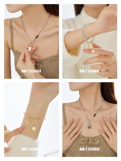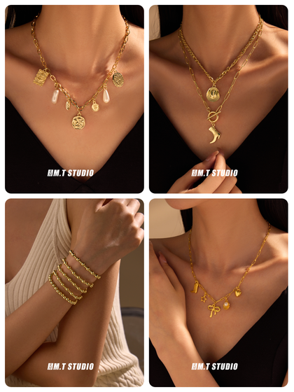 外贸首饰希音Temu跨境电商小麦色无头风项链耳钉手链