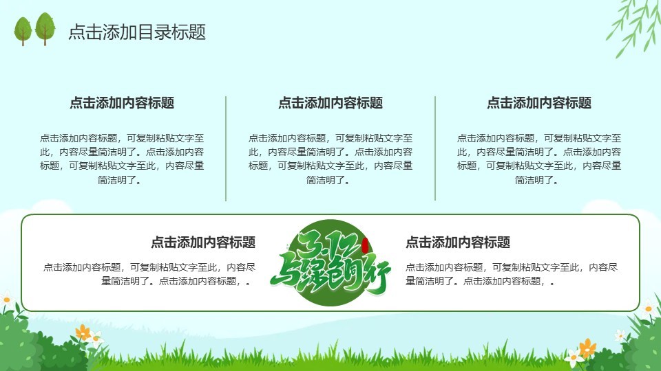 小清新儿童卡通植树节活动策划教学课件PPT模板