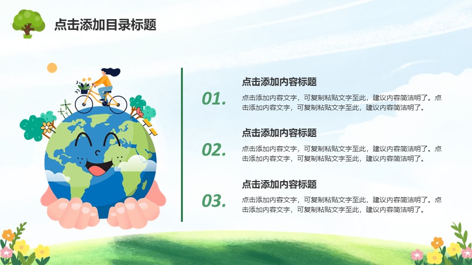 自然绿色小清新世界地球日公益环保宣传PPT模板