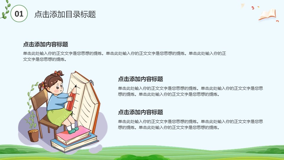 小清新卡通风中小学生教育培训主题班会课件PPT模板