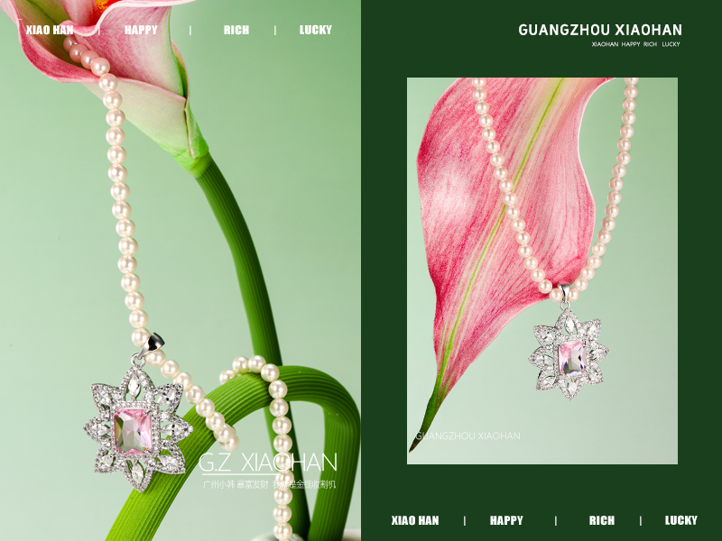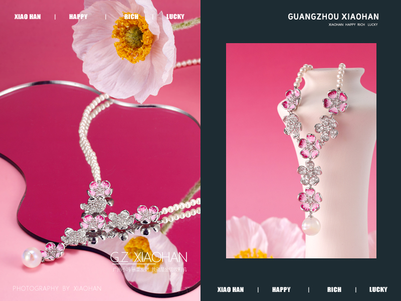 首饰拍摄 粉色场景 珍珠项链 花朵场景 首饰创意