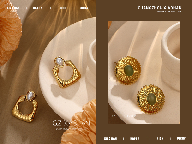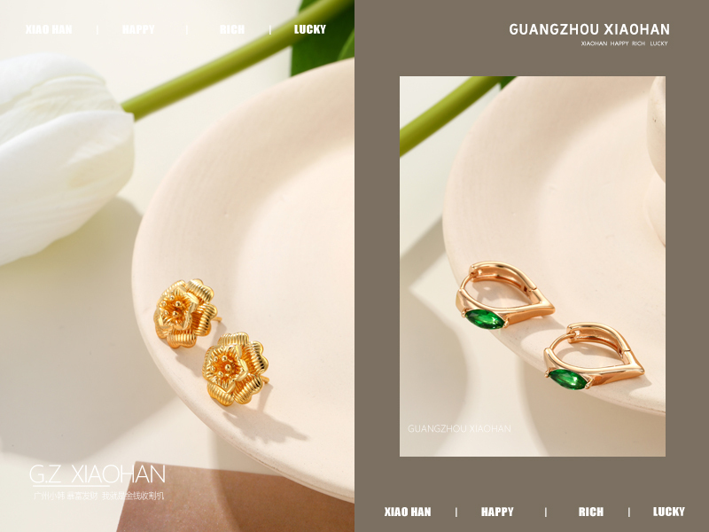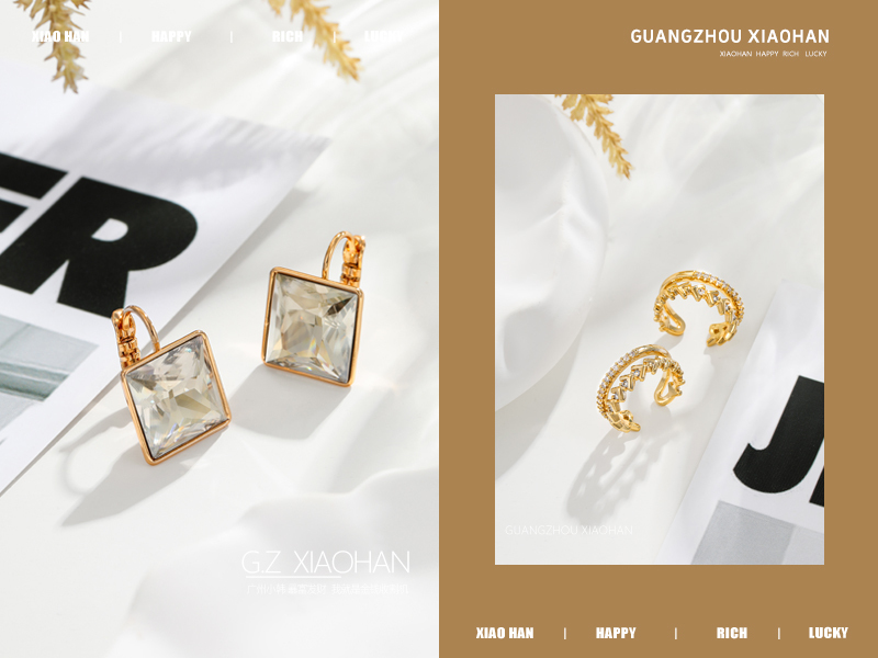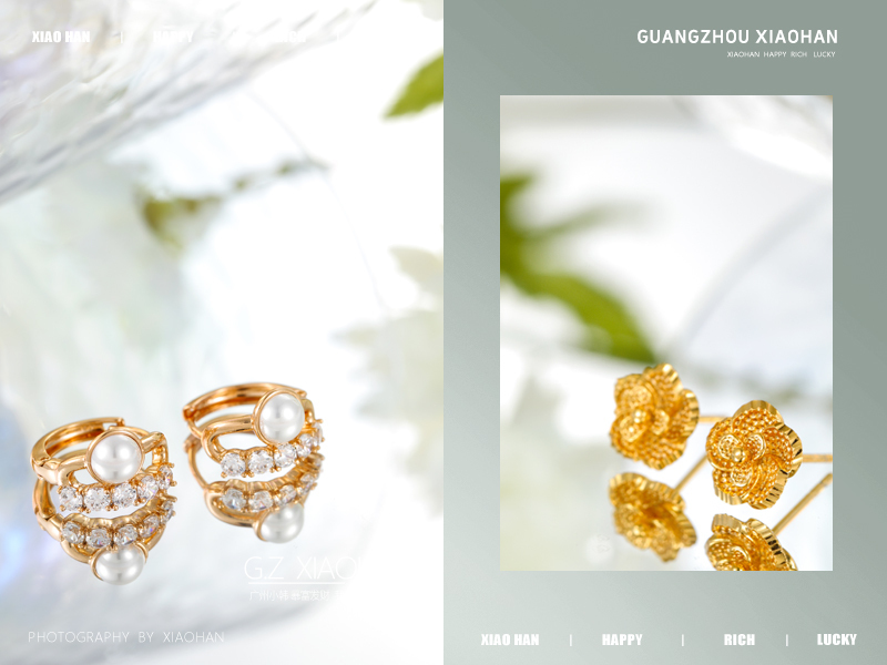 电商首饰拍摄 耳钉拍摄 黄金耳钉 时尚耳钉 首饰场景