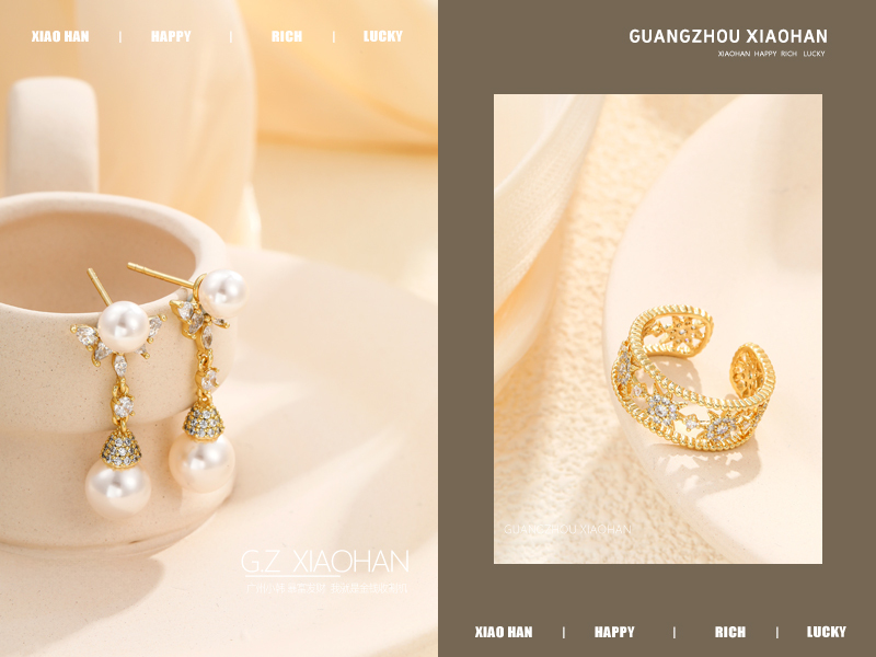 电商饰品拍摄 黄金耳钉 戒指 国潮饰品 新中式耳钉