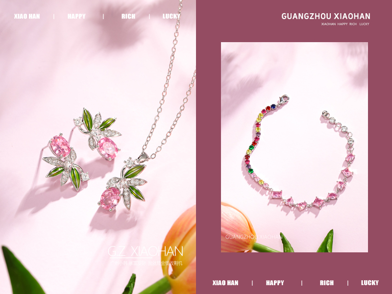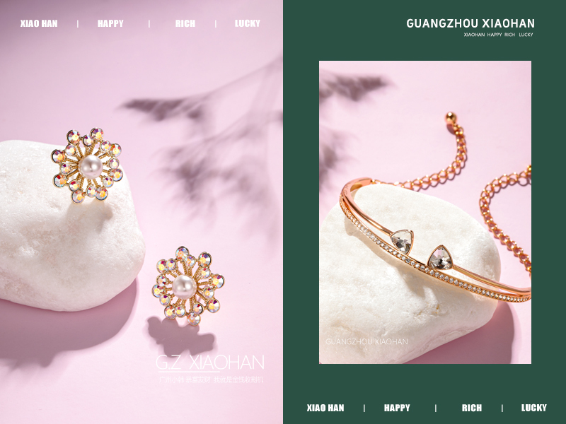 电商饰品拍摄 珠宝首饰拍摄 粉色场景 手链 耳钉