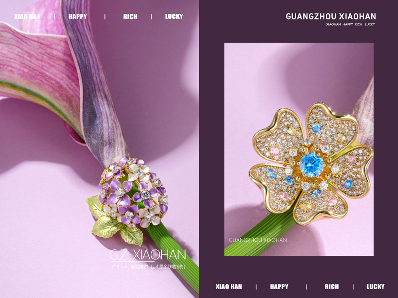 电商首饰拍摄 胸针拍摄 项链 时尚首饰 紫气东来 花朵