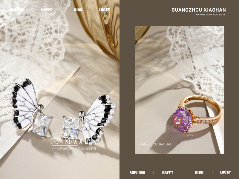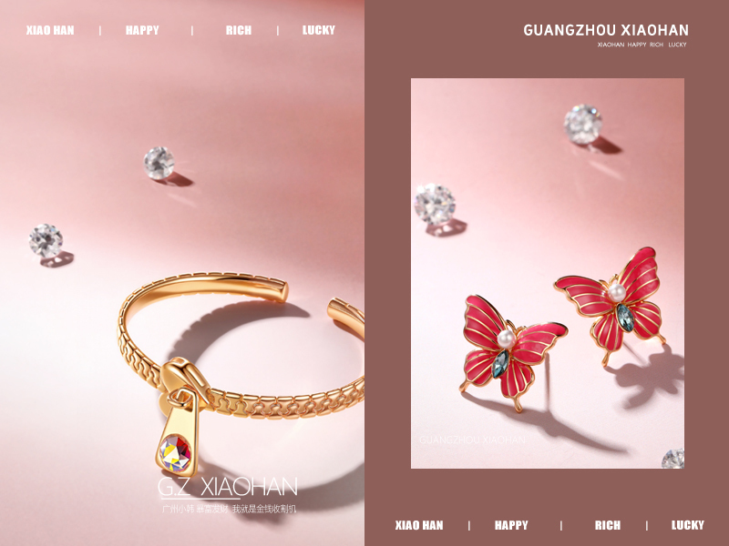 电商首饰拍摄 首饰海报 饰品广告 手镯 耳钉 蝴蝶