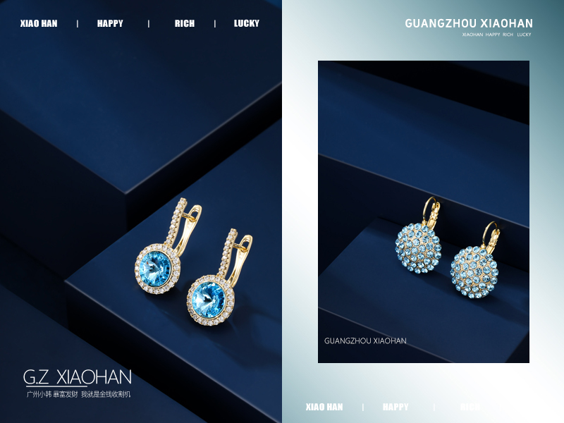 电商饰品拍摄 蓝宝石耳钉 钻石耳钉 时尚首饰 饰品 蓝