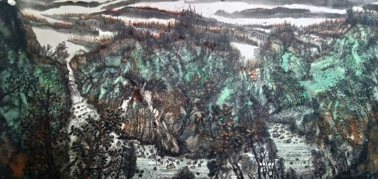 中国青年画家江杰路作品--暮从碧山下 山岳随人归