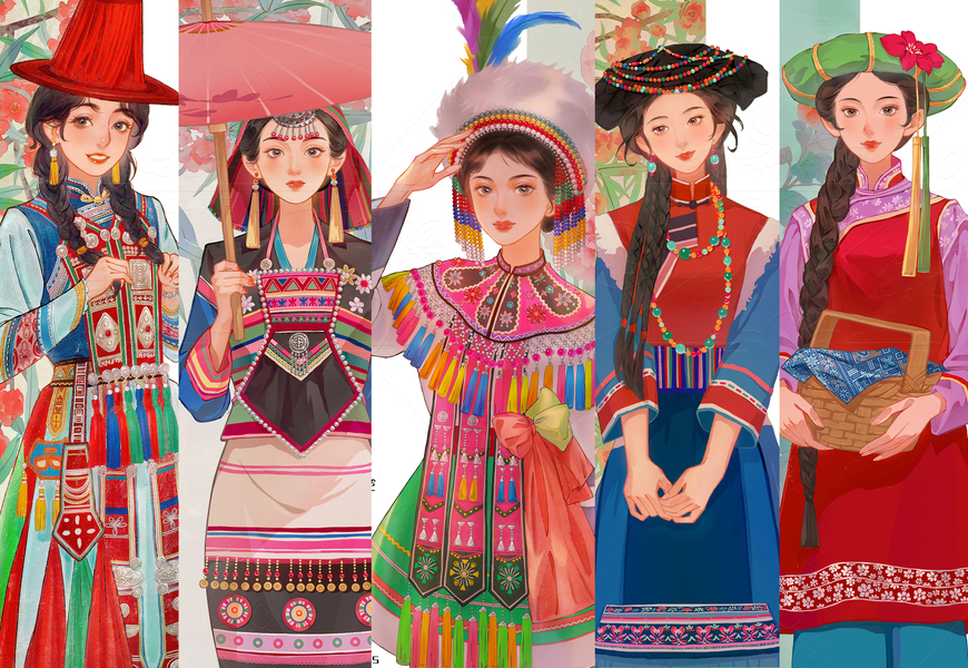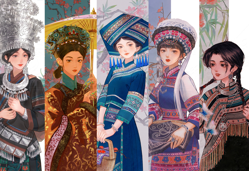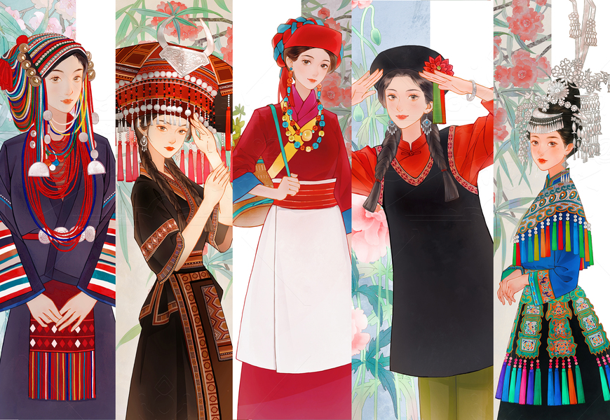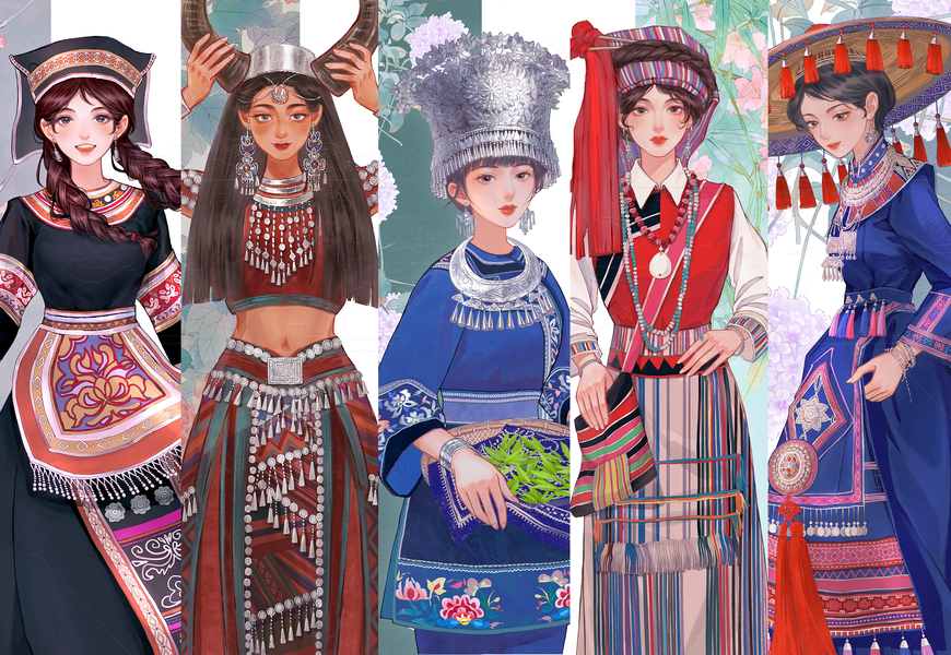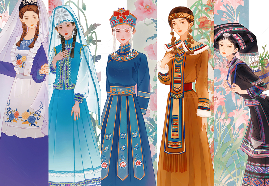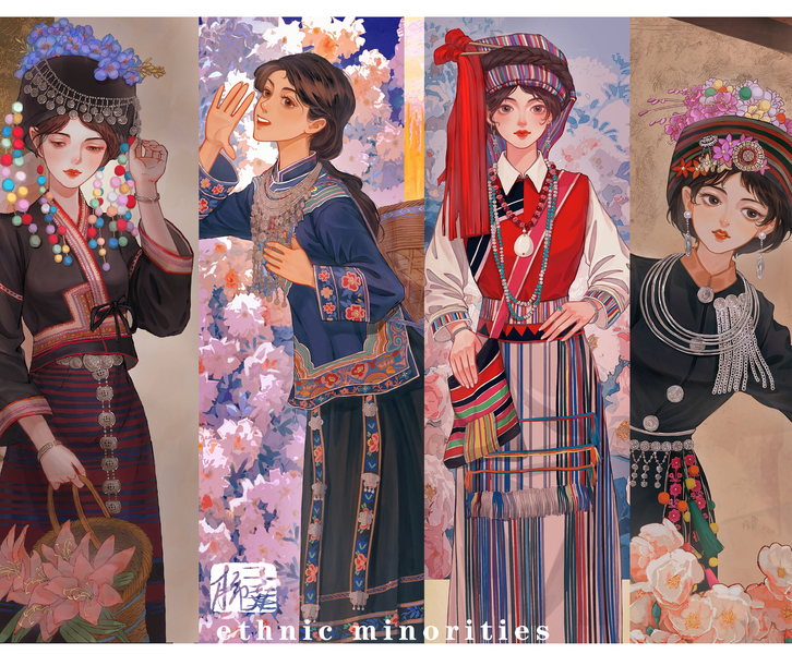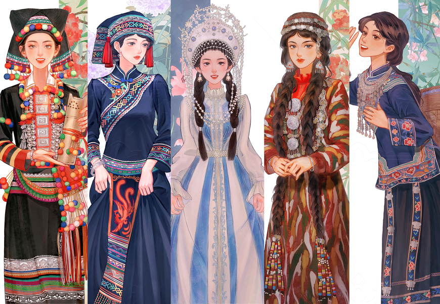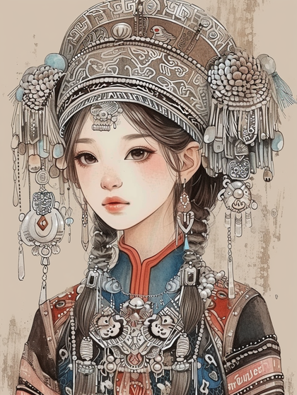 【民族风插画】银饰闪耀,衣裙翩翩,她笑如花