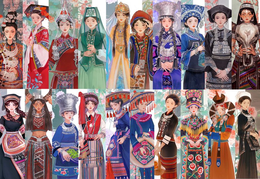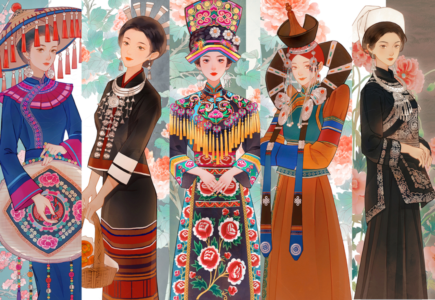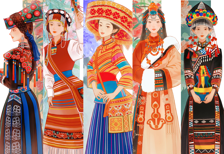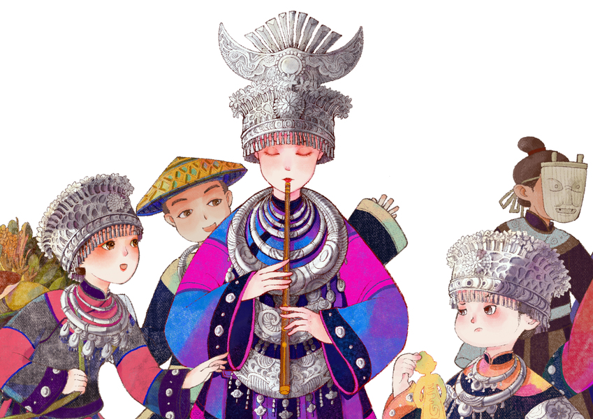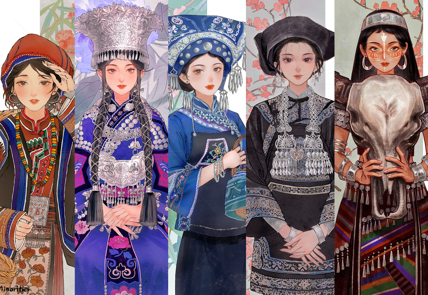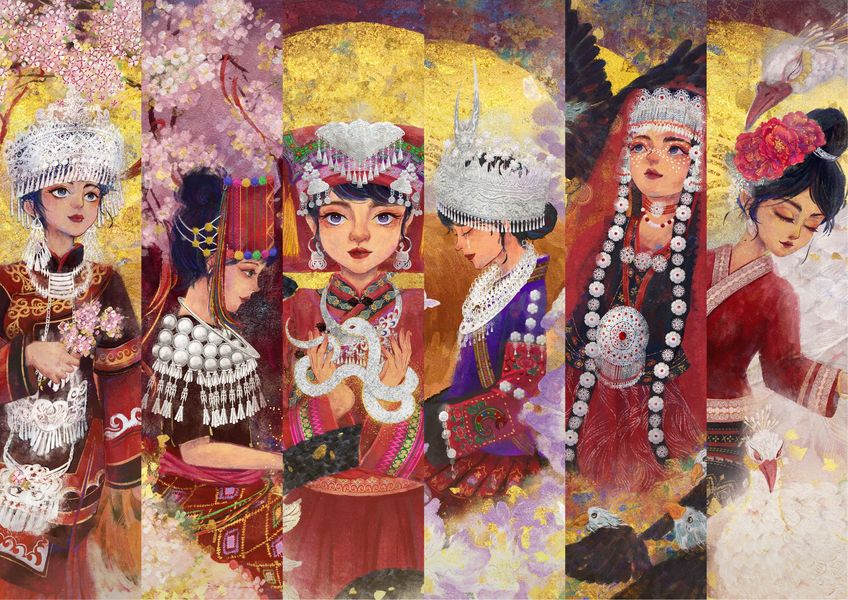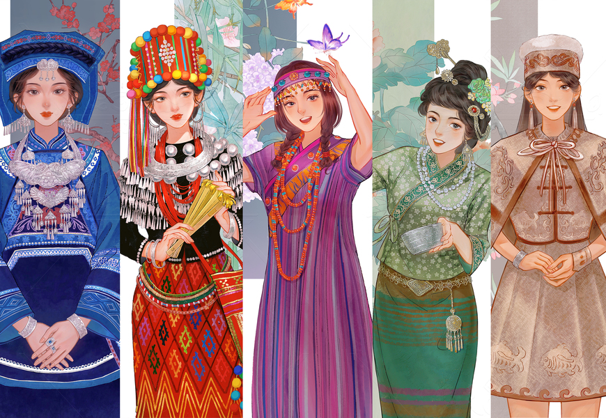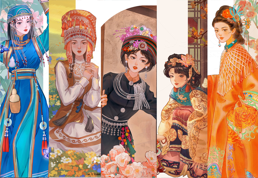【民族风插画】银饰闪耀,衣裙翩翩,她笑如花