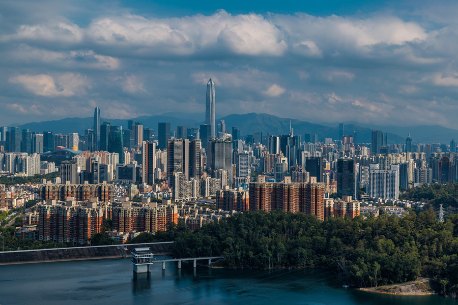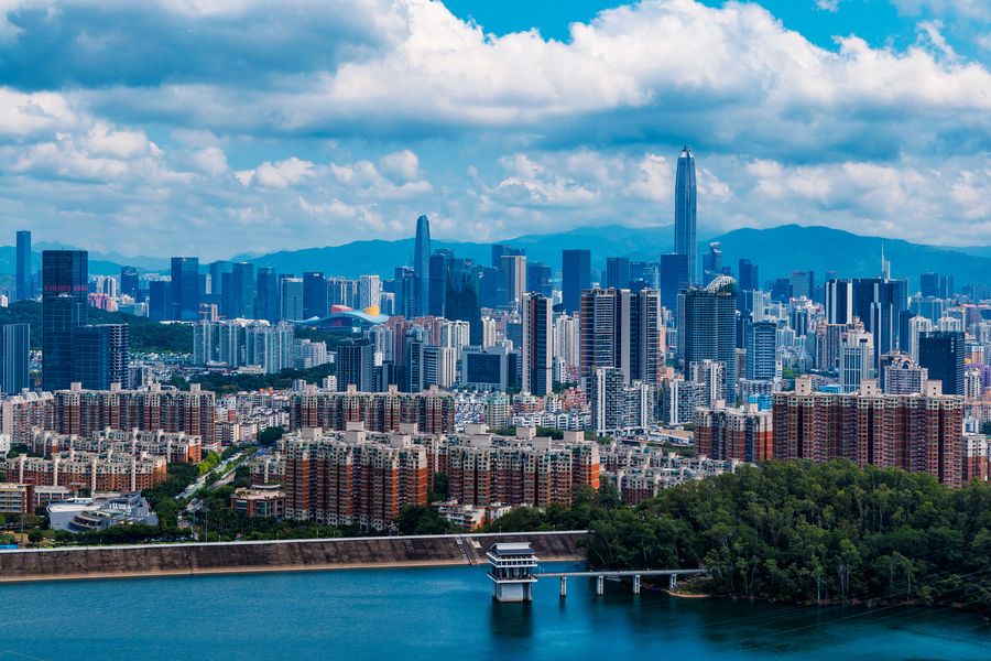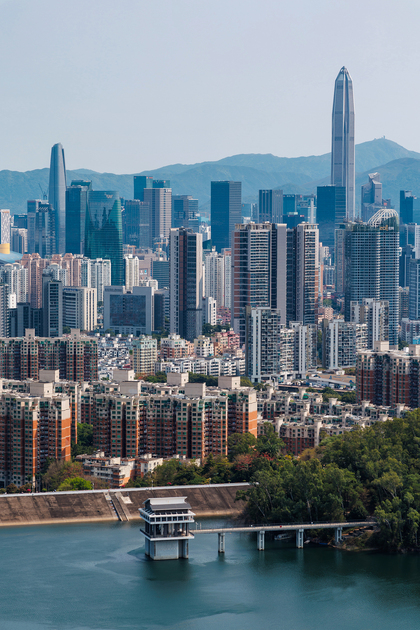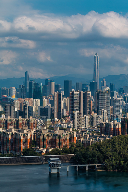 深圳梅林水库后山 城市天际线