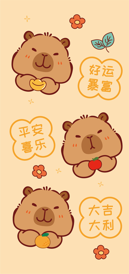 卡皮巴拉水豚萌萌壁纸手机壳插画窗帘地垫