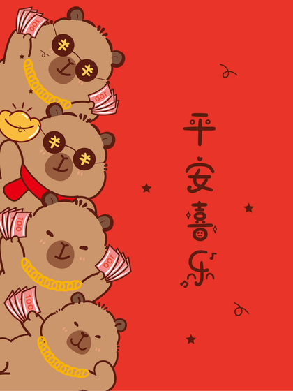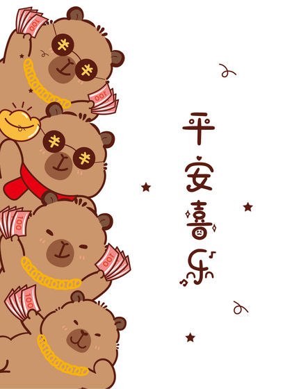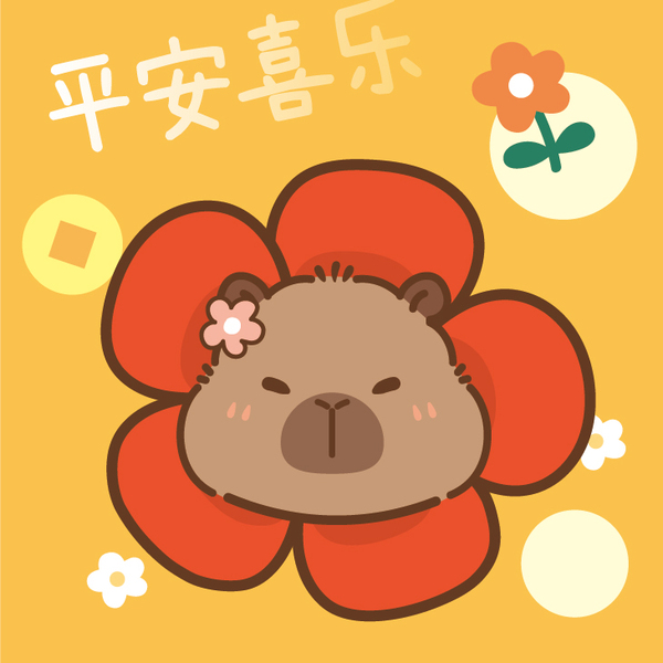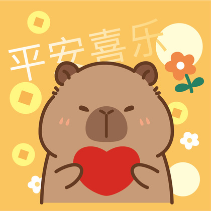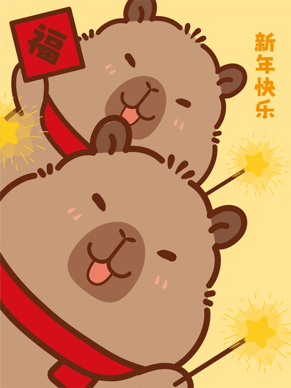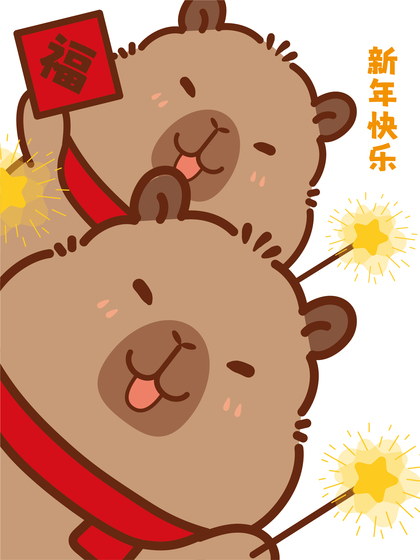 卡皮巴拉水豚萌萌新年快乐元旦快乐2025
