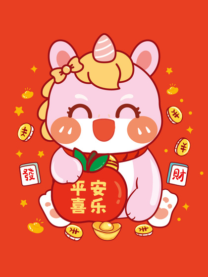 可爱的小马宝宝卡通可爱招财进宝喜庆插画