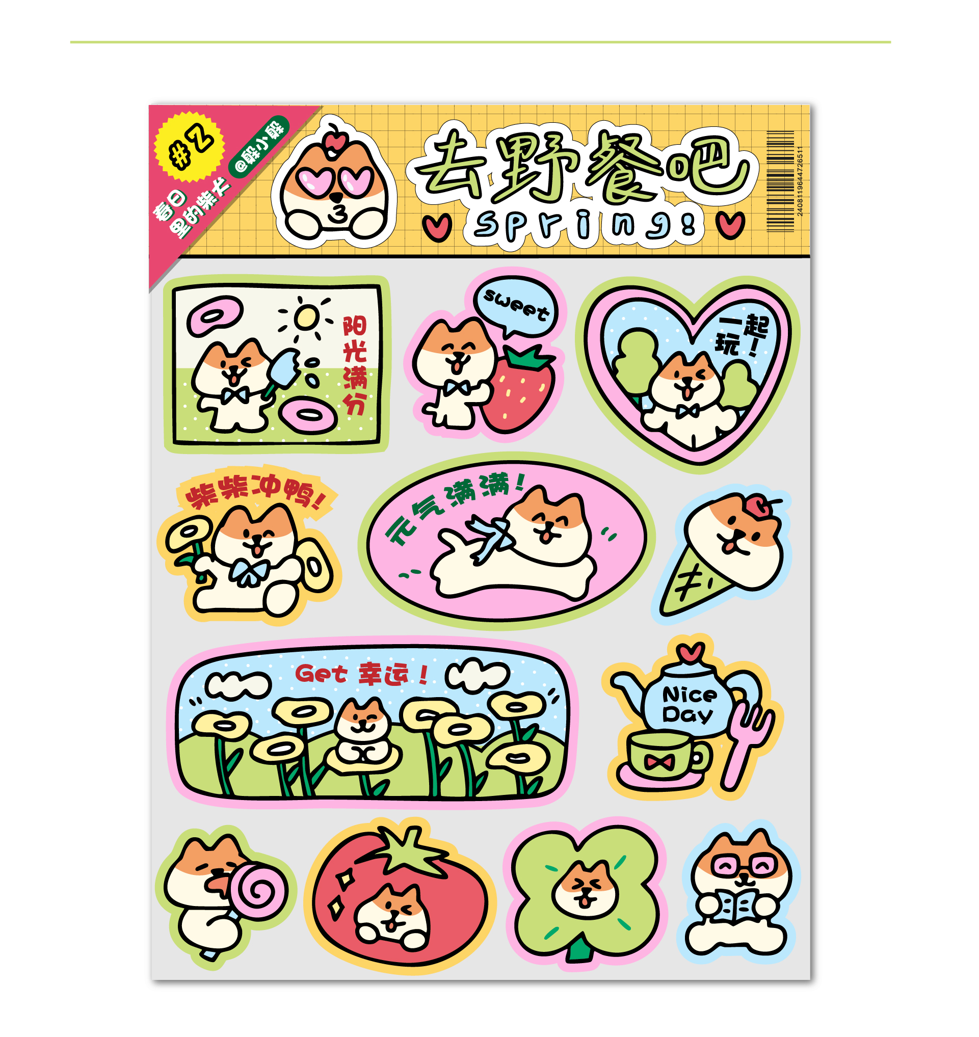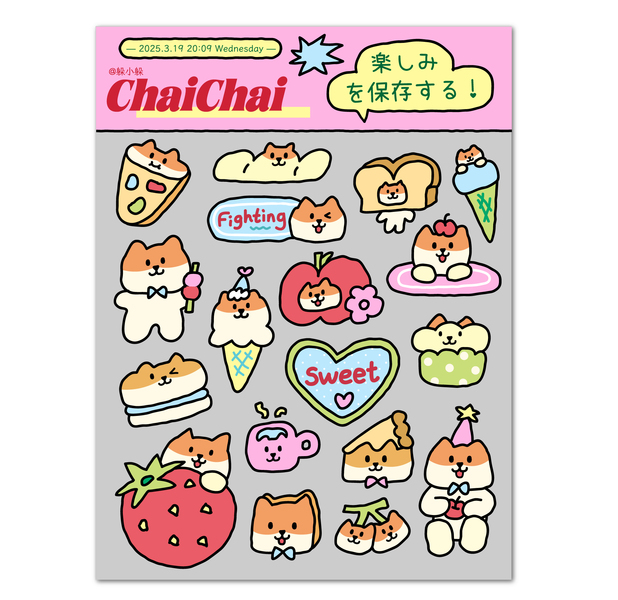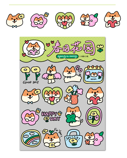 快乐柴柴小狗贴纸(相框贴纸、贴纸、手帐素材)