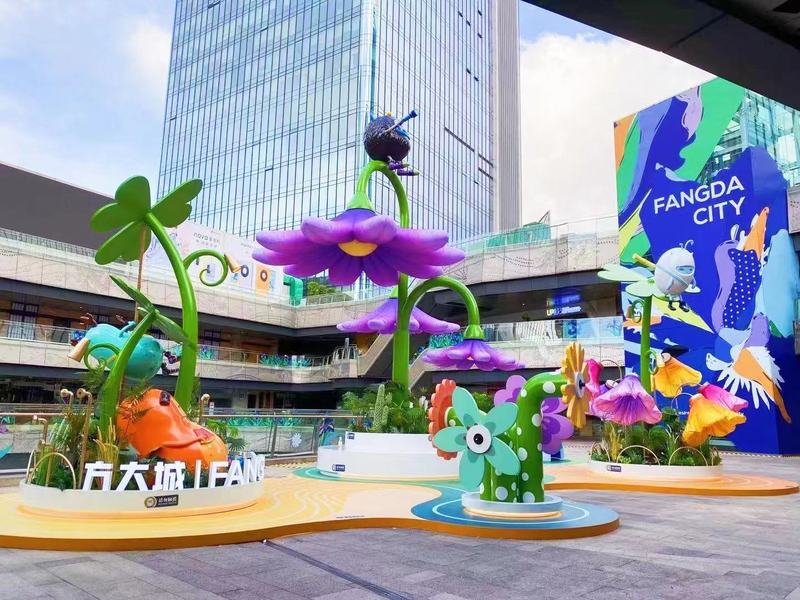 大明气模——首展方大购物中心开合花