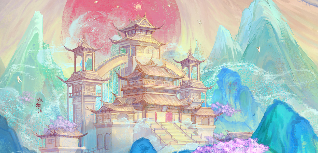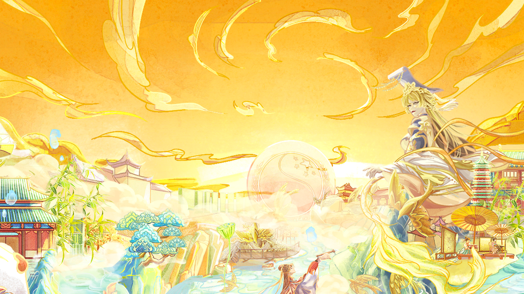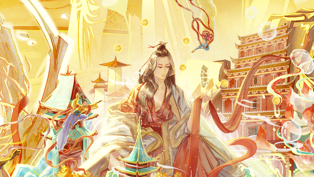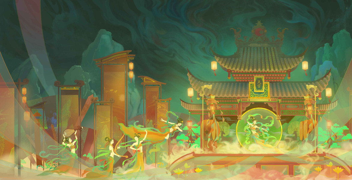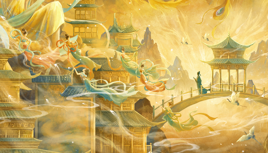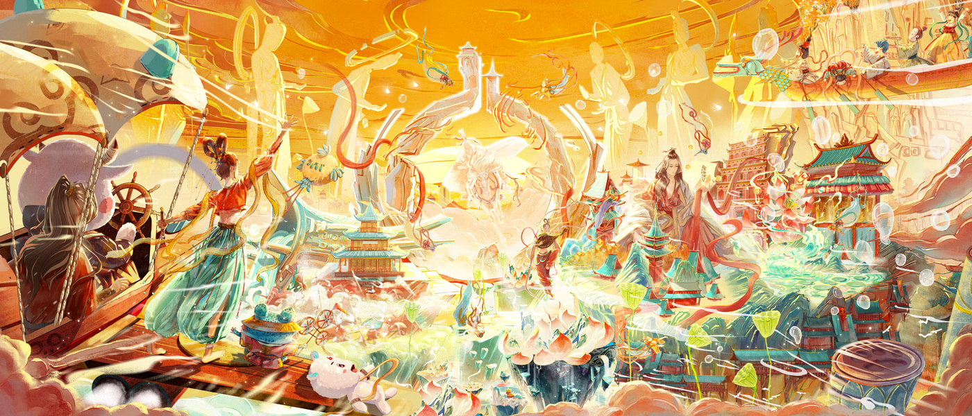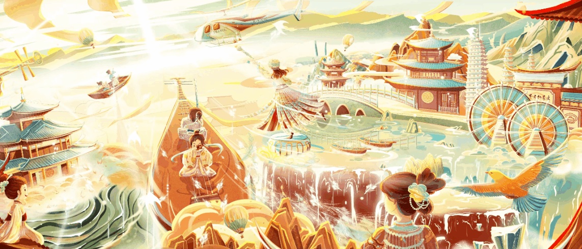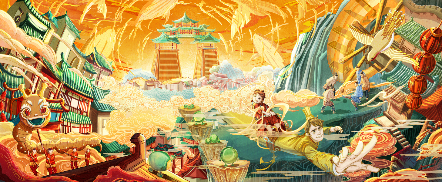 丝绸之路(景德瓷器)绸缎长卷商业插画