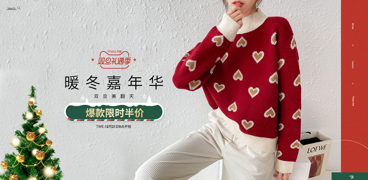 淘宝天猫女装母亲节圣诞双旦嘉年华PC端电脑端海报