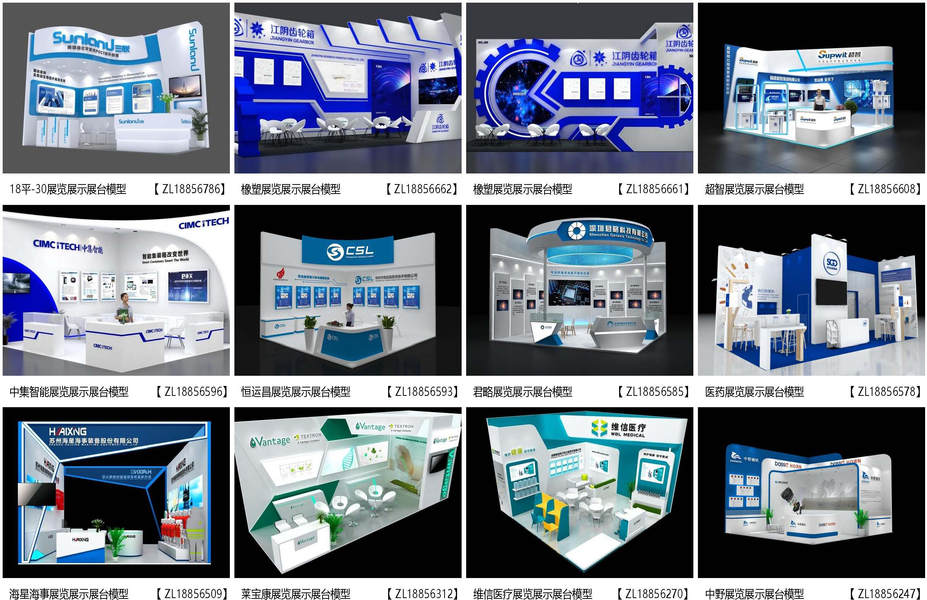 展览模型 | 18-36平米 三面开口 | 展览展台设计模型09