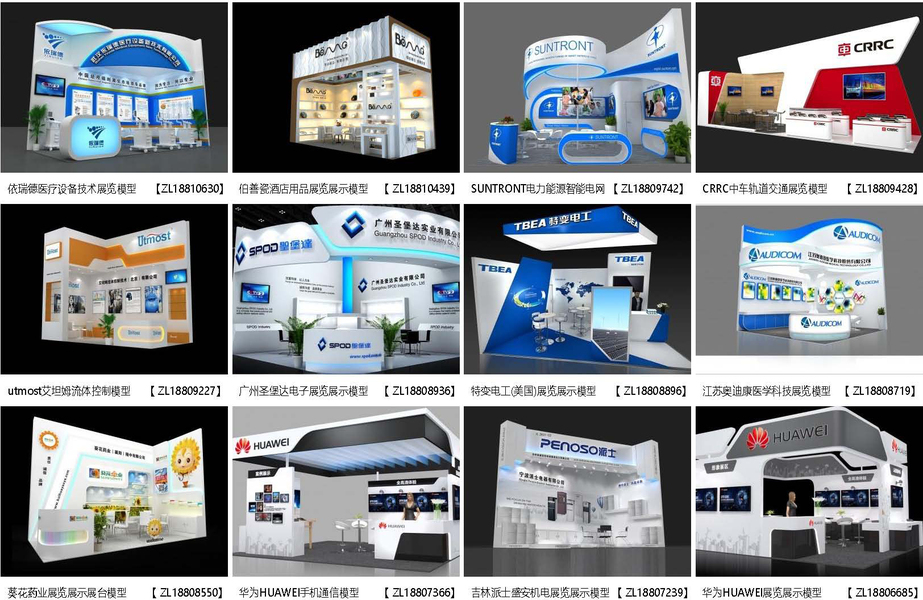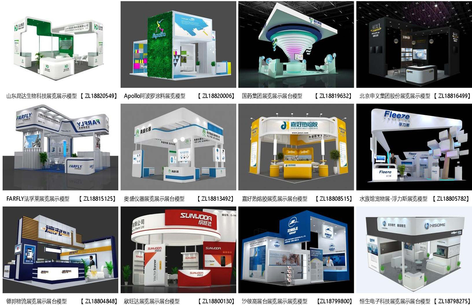 展览模型 | 9-18平米 | 三面开口 | 展览展台设计模型