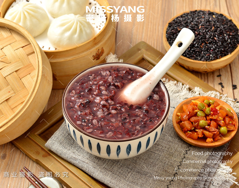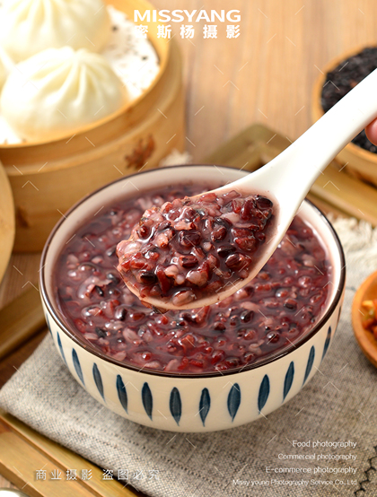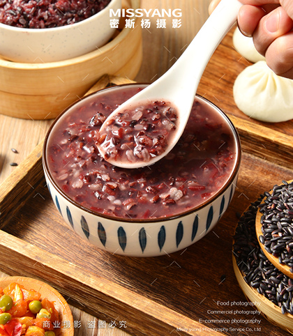 东北杂粮黑紫糯米粥饭|电商美食产品摄影|×郑州密斯杨