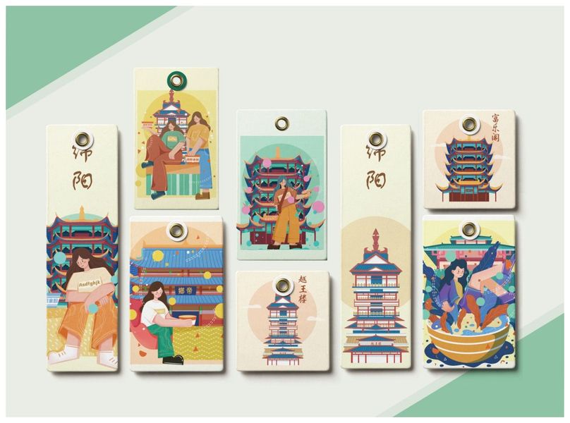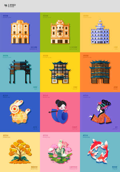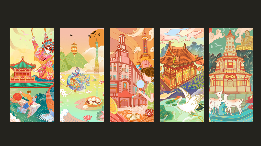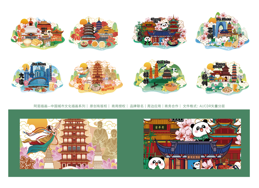 阿茹插画中国城市文化插画系列 AI/CDR矢量分层