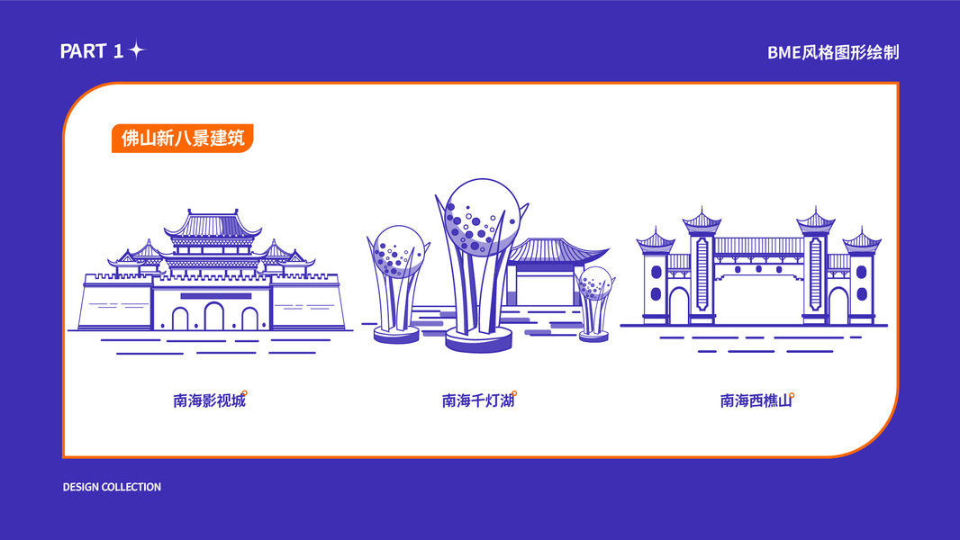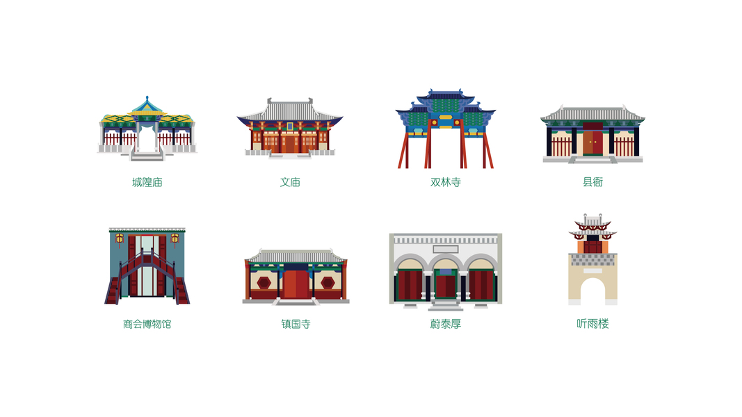 佛山新八景-平面矢量建筑图案文化景点插画icon