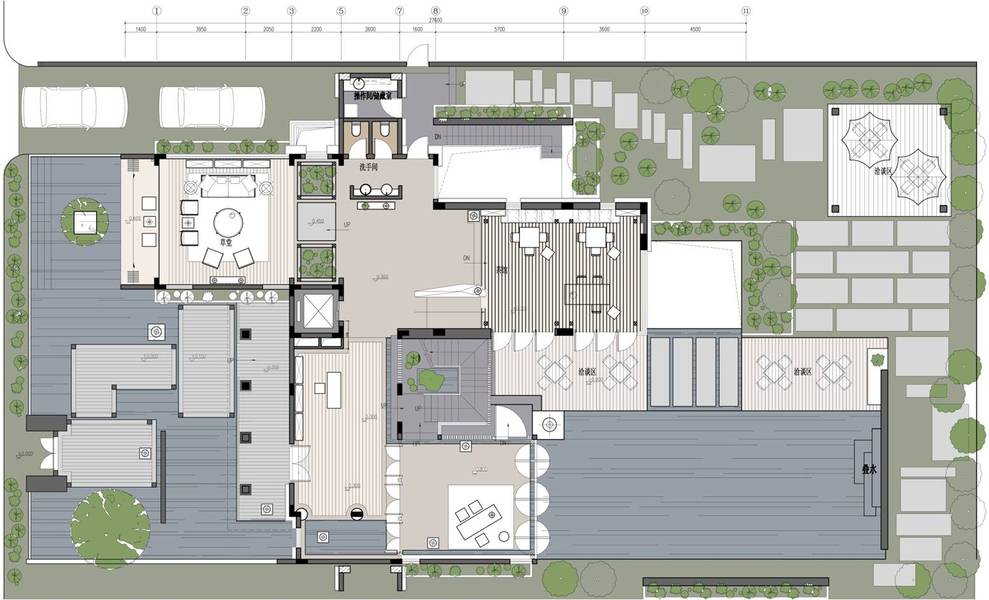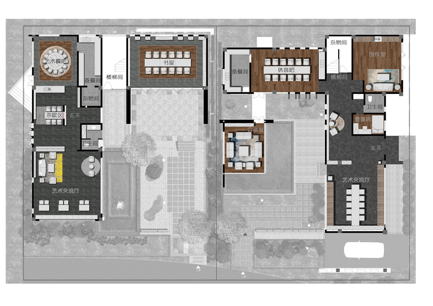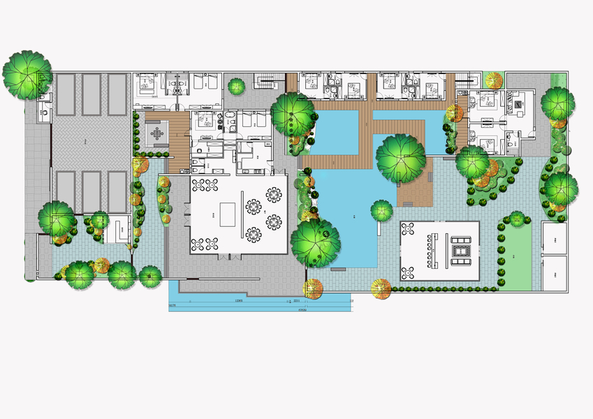 金科九曲河装修,重庆合院别墅设计,新中式风格效果图