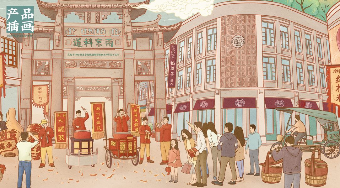 印象潮州—手绘潮州景点产品插画