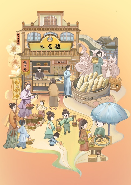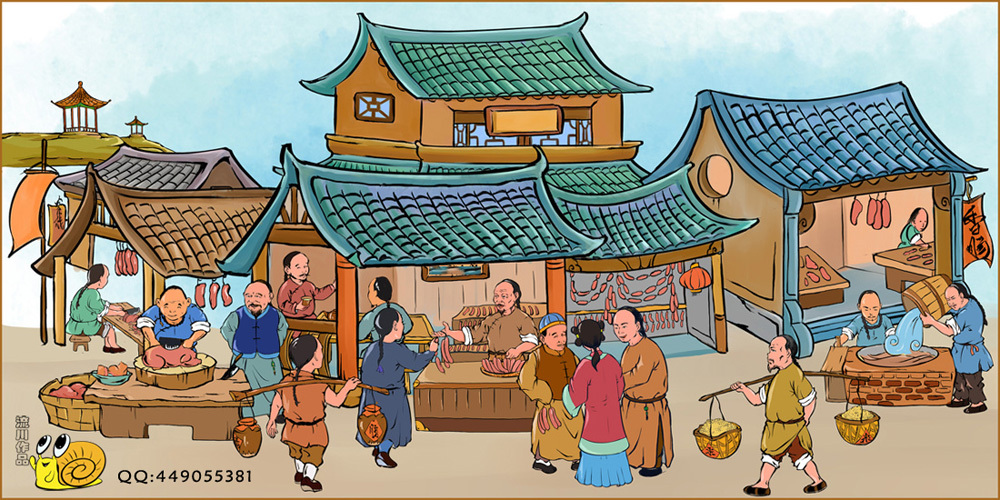 桂花村熟食礼盒插画