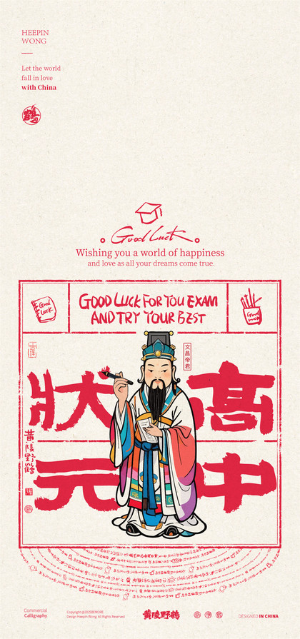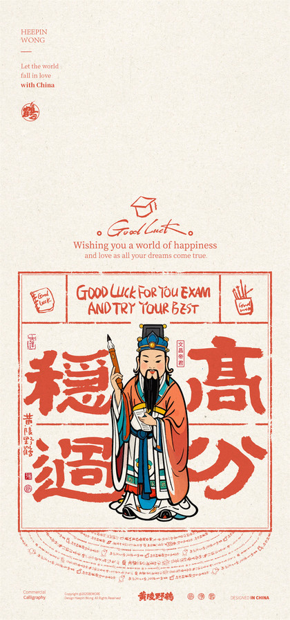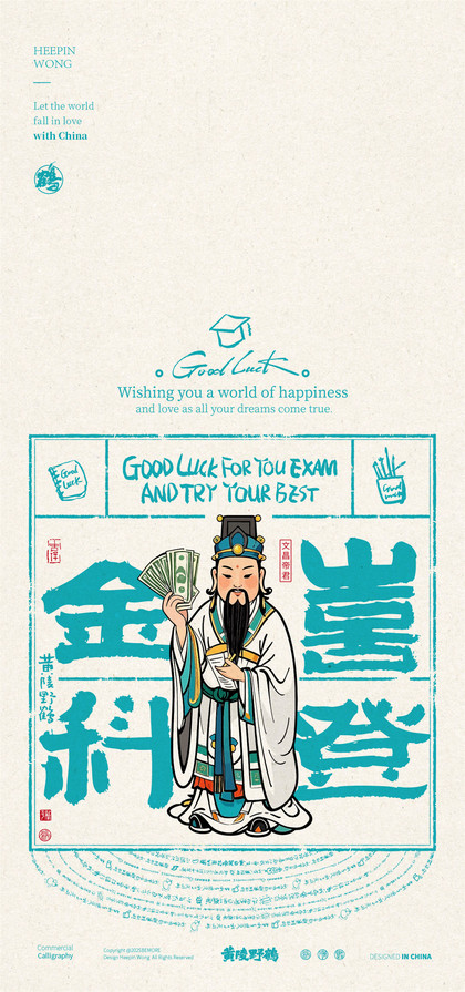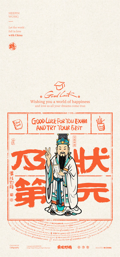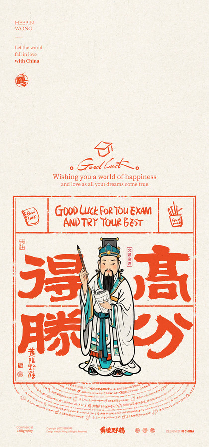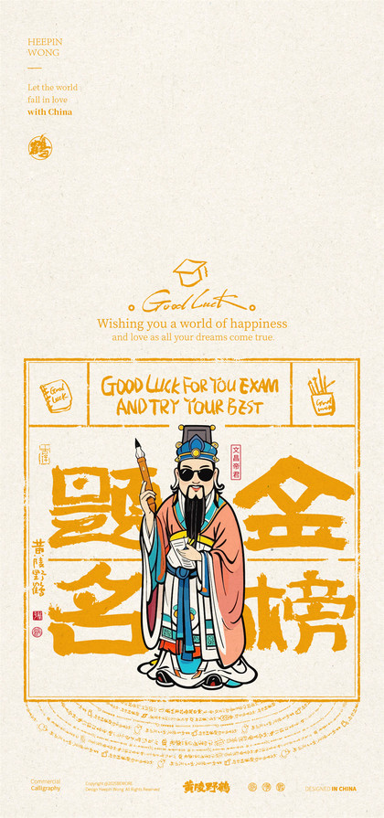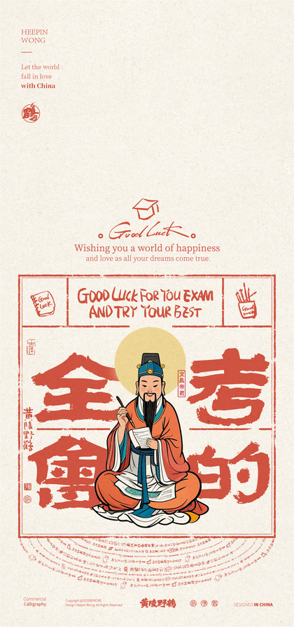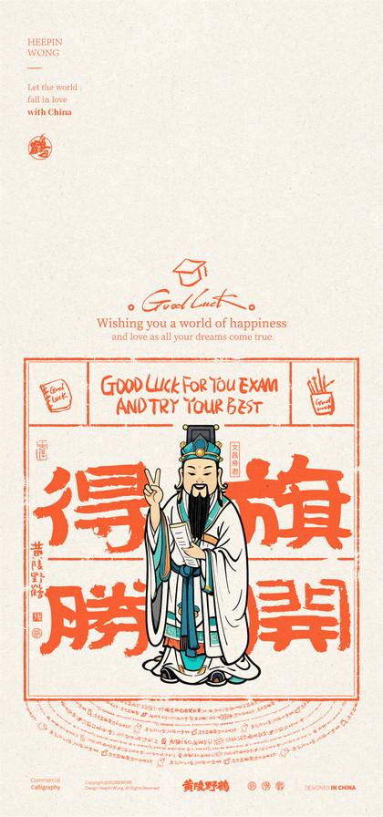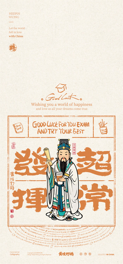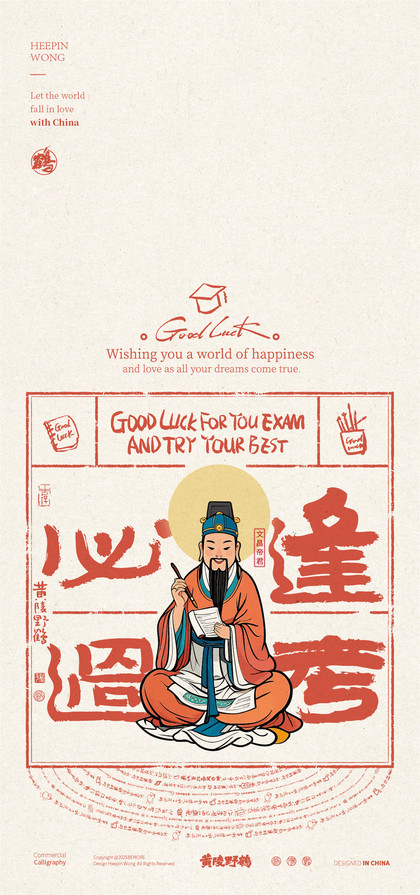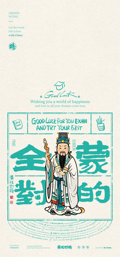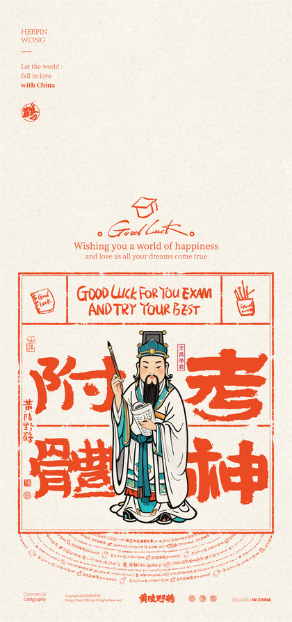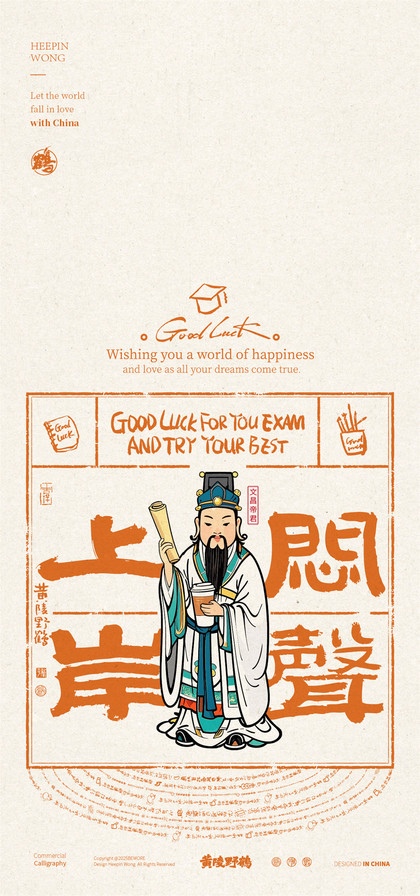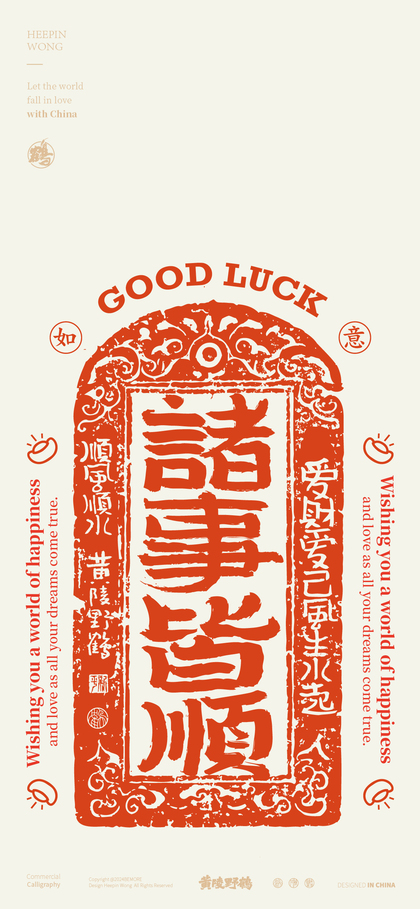 白墨研字|黄陵野鹤令牌拓印风系列好运内容书法设计