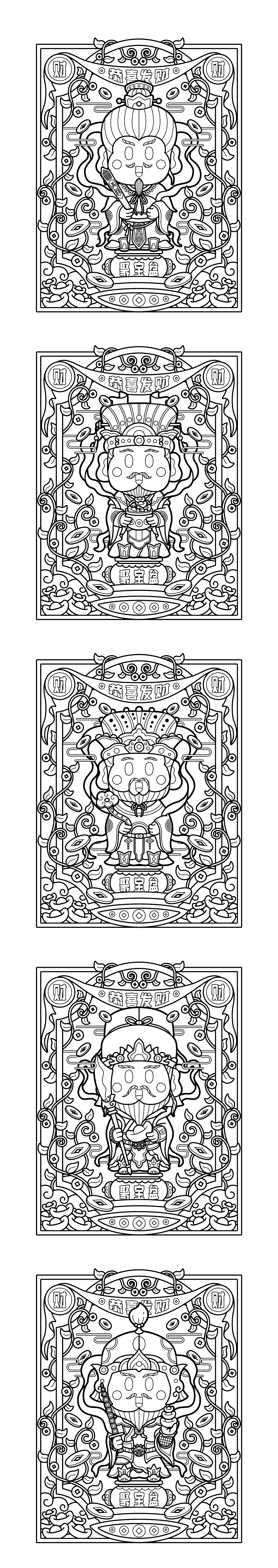 福禄寿禧财|字绘插画|剪纸