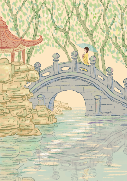 《大美承德·山庄印象》系列明信片 避暑山庄插画