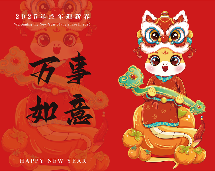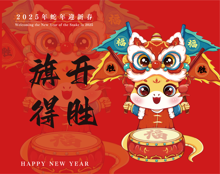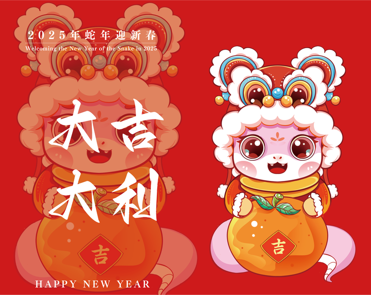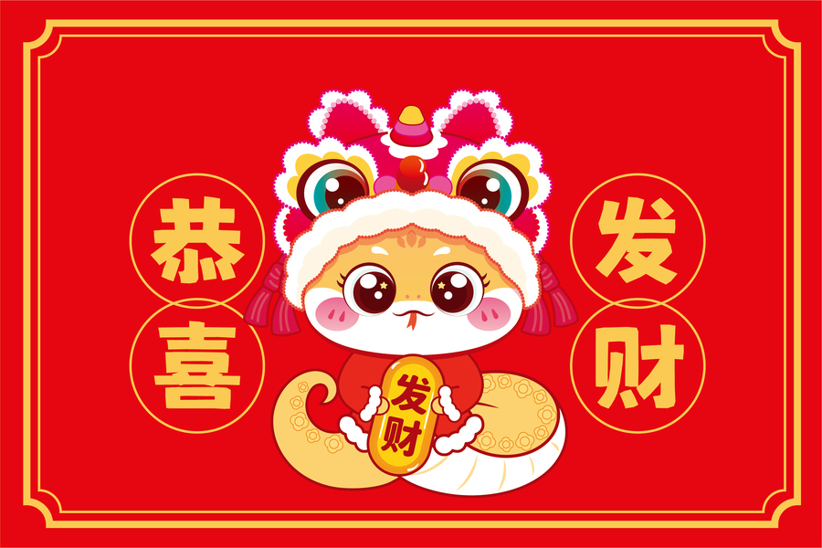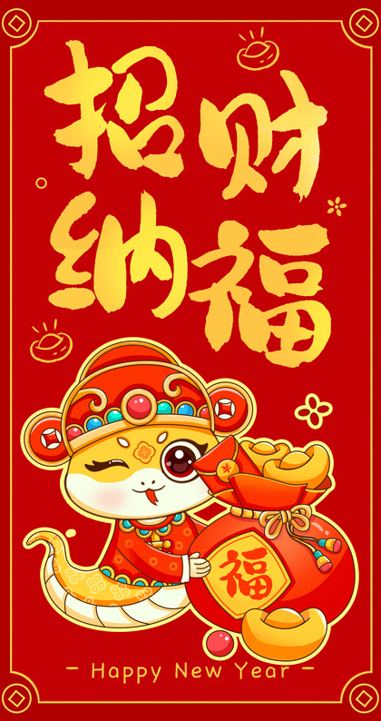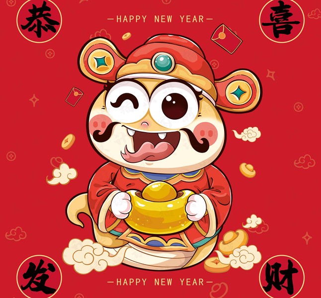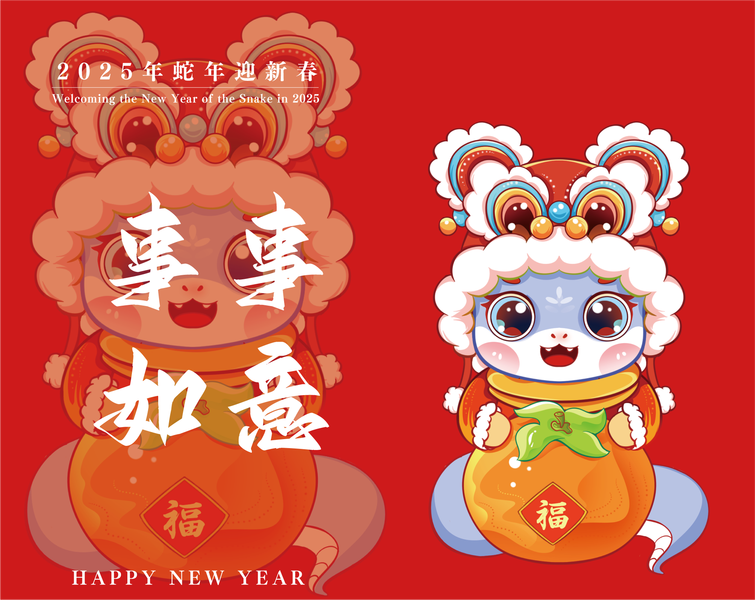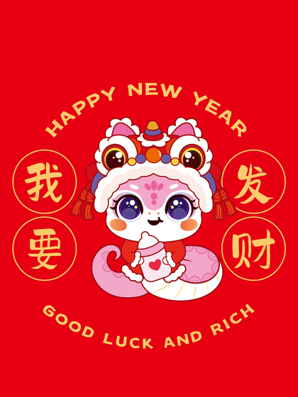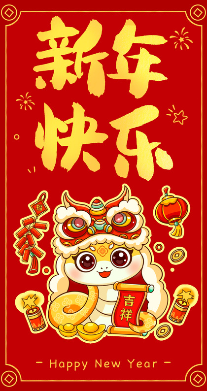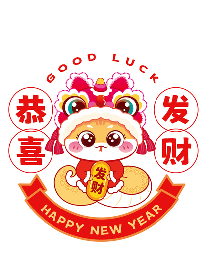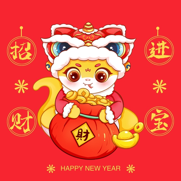 快乐蛇年IP卡通形象插画窗花抱枕包装新年礼盒可合作