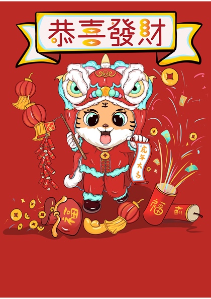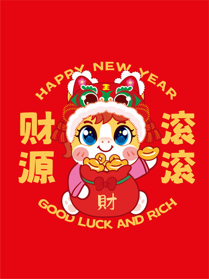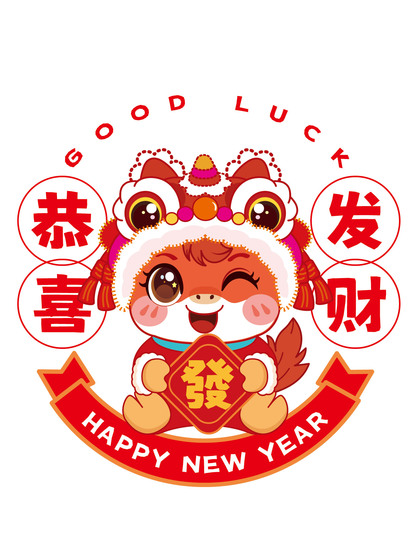 快乐小马插画卡通新年喜庆窗花红包贴纸设计
