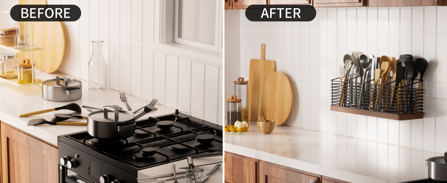 亚马逊厨房置物架铲子桶产品精修设计摄影