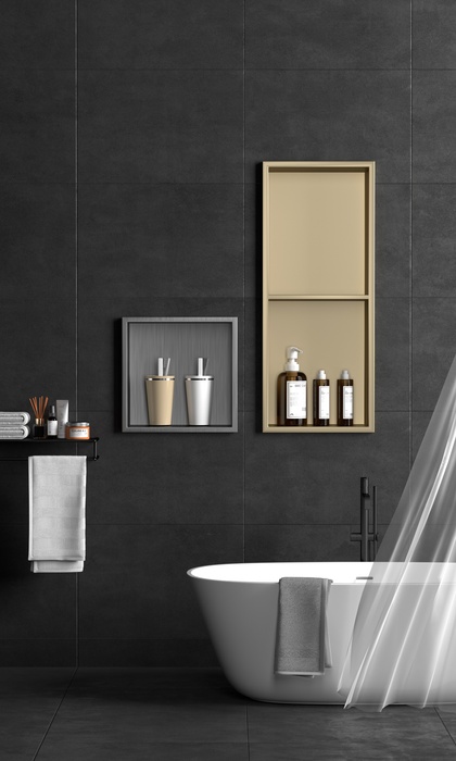 壁龛嵌入式卫生间浴室柜子金属壁柜置物架 渲染
