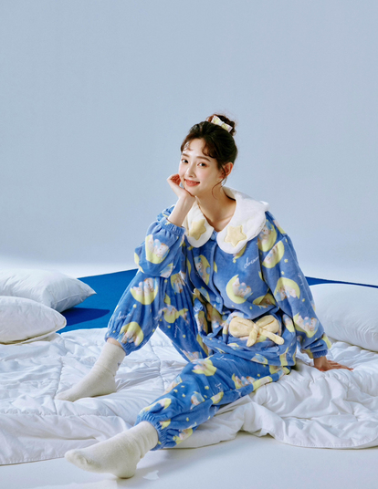 安之伴珊瑚绒睡衣加绒加厚保暖套装复合绒/联盒广告