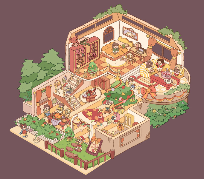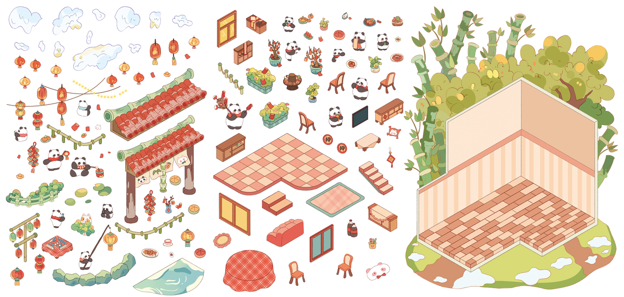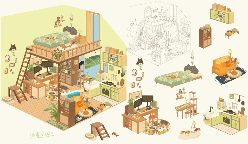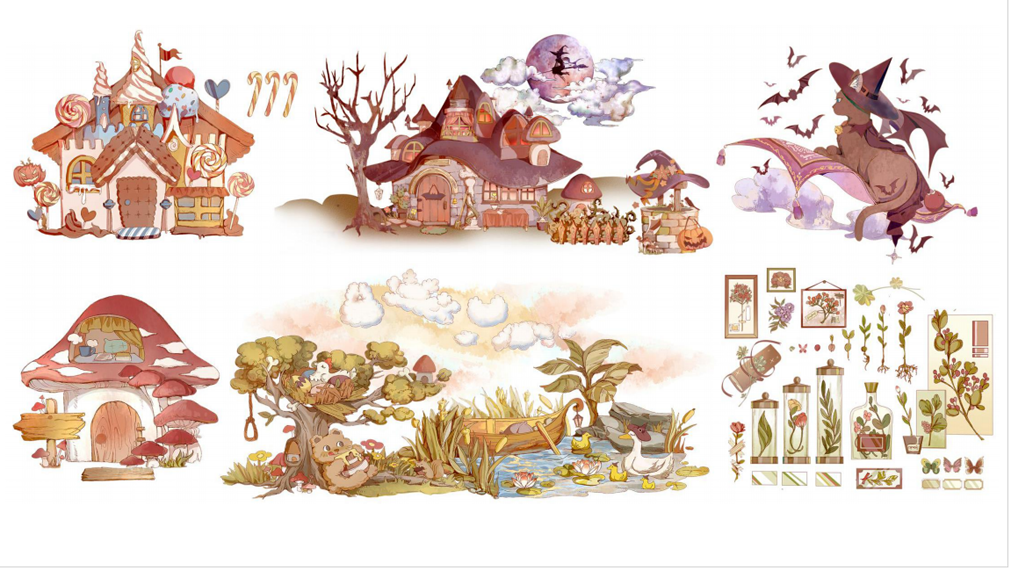 房屋造景贴纸|梦想小家 充满绿植复古调调的家