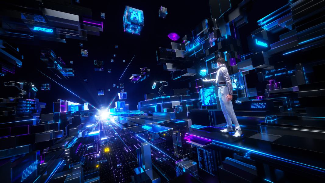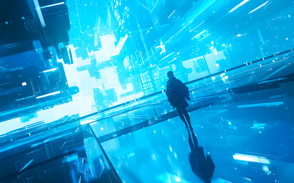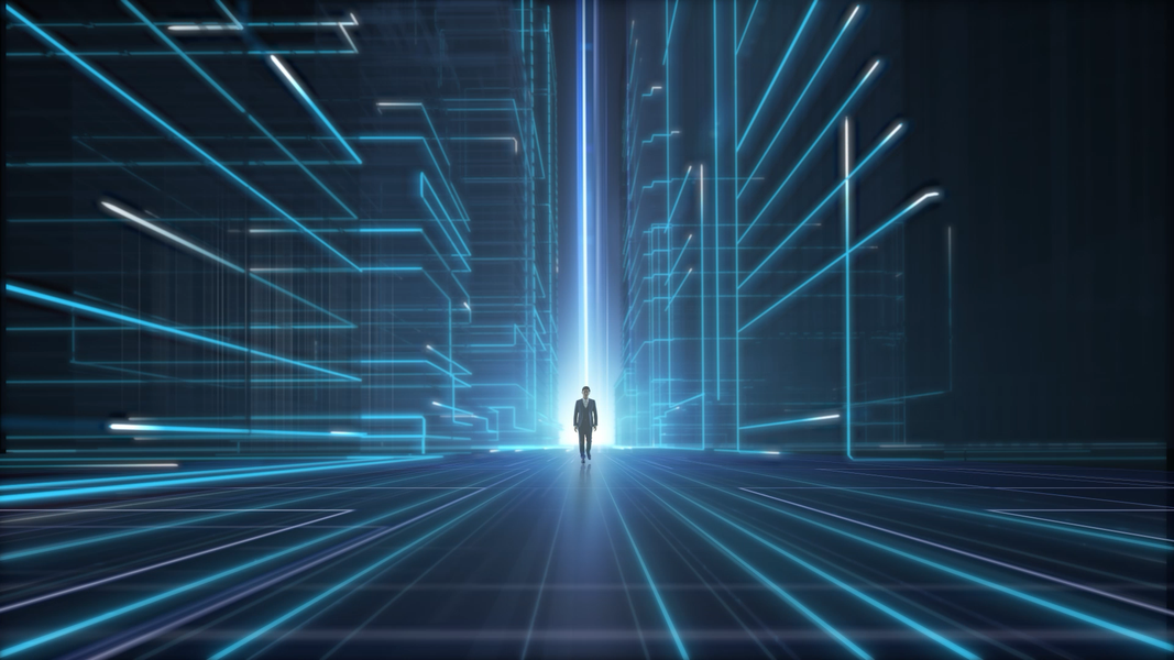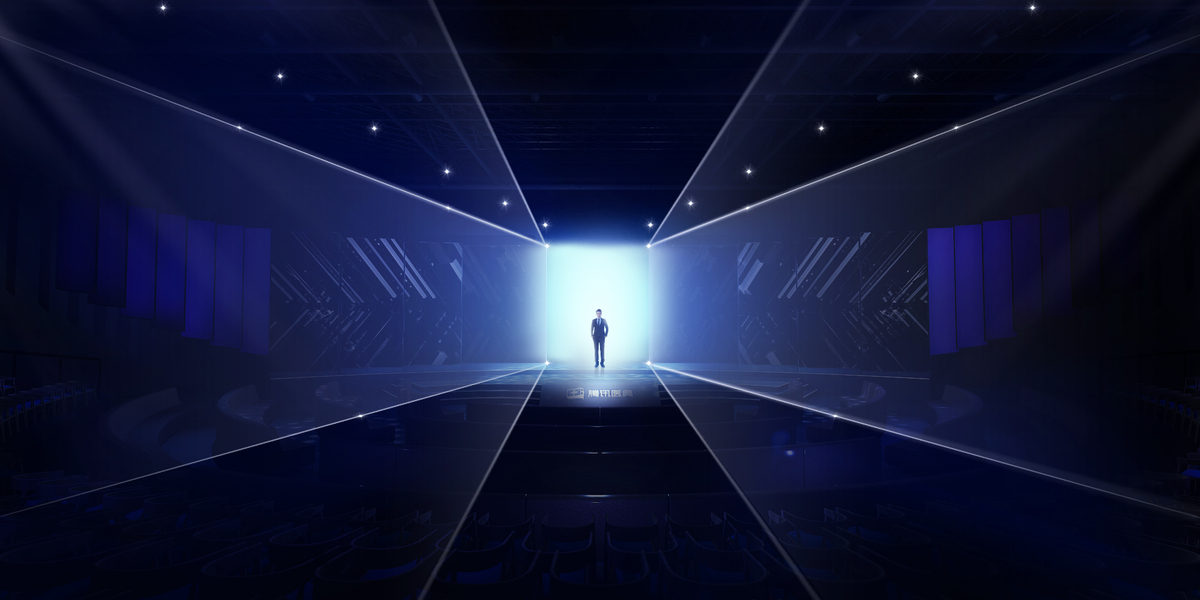 科技未来线条箭头三角方向汇聚融合活动KV主视觉设计