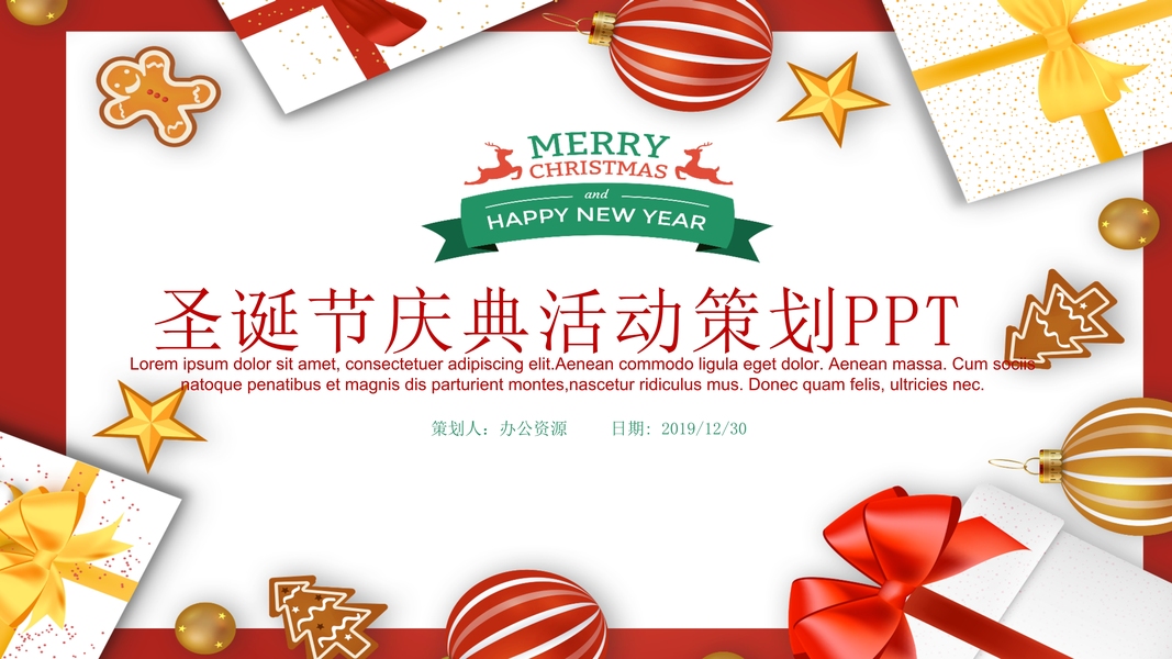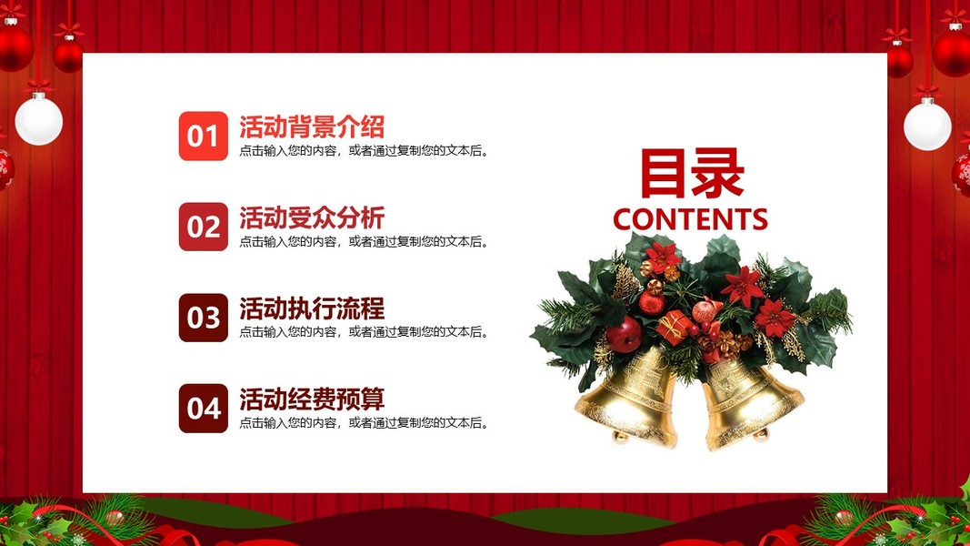 红色唯美设计风格圣诞节活动策划通用PPT模板