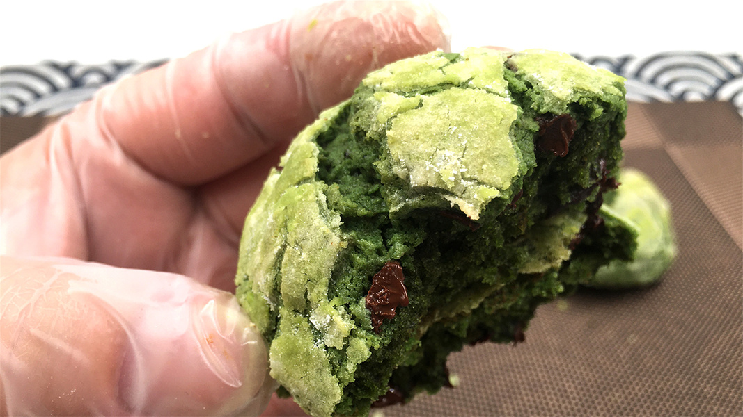抹茶裂纹曲奇,裂纹错落有致,一口酥脆,清新加甜蜜。